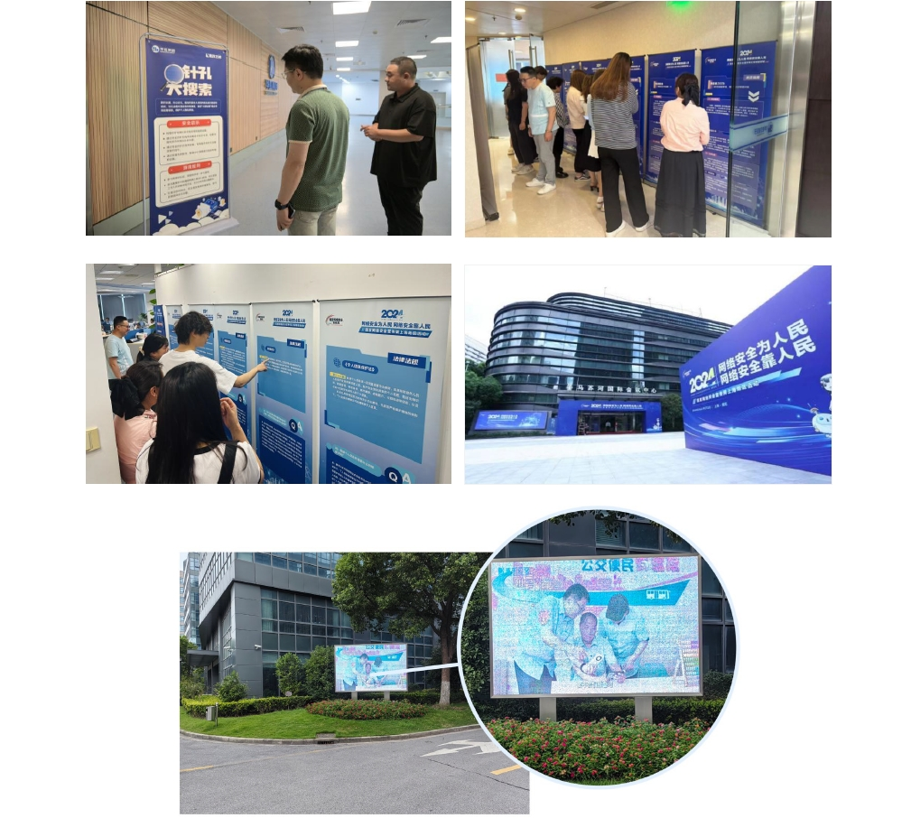 依托云工會平臺開展以網(wǎng)絡(luò)安全宣傳為主題的線上學(xué)習(xí)活動,圍繞《網(wǎng)絡(luò)安全法》《數(shù)據(jù)安全法》等5個主題開展知識競答,激發(fā)員工學(xué)習(xí)網(wǎng)絡(luò)安全知識的積極性,檢驗(yàn)提升員工的網(wǎng)絡(luò)安全防護(hù)水平。線下設(shè)置網(wǎng)絡(luò)安全宣傳展板、海報(bào)、LED屏幕、宣傳手冊,邀請專家講課、組織培訓(xùn)、參觀展覽,設(shè)計(jì)模擬場景查找針孔探頭,提升員工信息安全意識,筑牢個人信息安全之堤,保護(hù)企業(yè)信息安全。